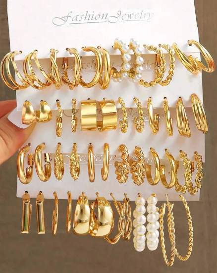 Elevate your style with this 12-piece earring set, featuring faux pearls, geometric shapes, and twisted...