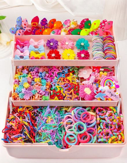 Unleash your creativity with this 886-piece kawaii hair accessories set, packed with colorful scrunchies, clips,...