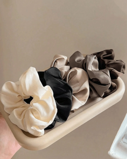 Classic Black, White & Brown High-Quality Satin Scrunchies