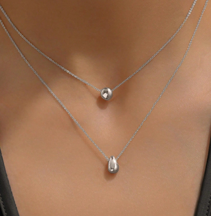 Add a touch of elegance to your style with this double-layer water drop beaded necklace,...