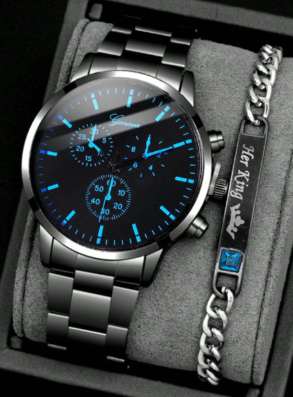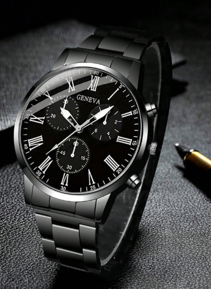 Upgrade your style with this elegant 2-piece men’s watch set, featuring a sleek black steel...