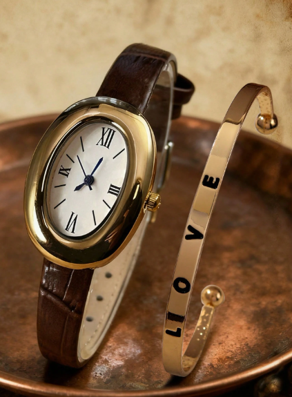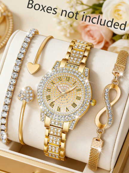 Elevate your style with this luxury 4-piece women’s set, featuring a stunning diamond-encrusted wristwatch paired...