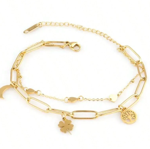 Add charm and elegance to your everyday look with this minimalist double-layer bracelet, featuring meaningful...