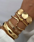 Add a touch of vintage elegance and bohemian charm to your look with this 5-piece set of delicate bangle bracelets. Featuring floral, plain, twisted, and geometric open designs, this set is perfect for daily wear, parties, holidays, or gifting.